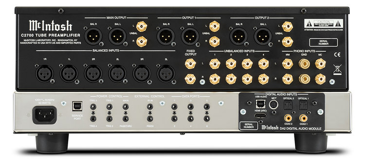 Là phiên bản nâng cấp của DA1, bo mạch DAC mang tên DA2 đem đến cho người yêu nhạc số sự tiện nghi chưa từng thấy ở sản phẩm McIntosh. Đầu tiên, DA2 được trang bị 07 ngõ vào chuyên dụng, bao gồm 02 ngõ coaxial, 02 ngõ optical, 01 ngõ USB, 01 ngõ MCT và 01 ngõ HDMI Audio Return Channel (ARC) hoàn toàn mới – cho phép người nghe kết nối C2700 trực tiếp với TV và trải nghiệm âm thanh tuyệt đỉnh qua hệ thống của mình.